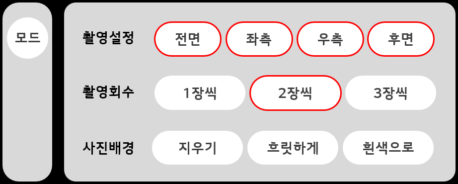 โ๏ธ ์ํ๋ ์ดฌ์ ์ฅ๋ฉด์ ์ ํํ์ธ์: ์ ๋ฉด, ์ข์ฐ, ํ๋ฉด